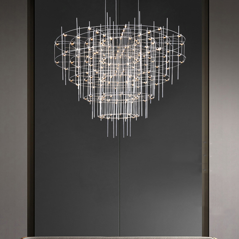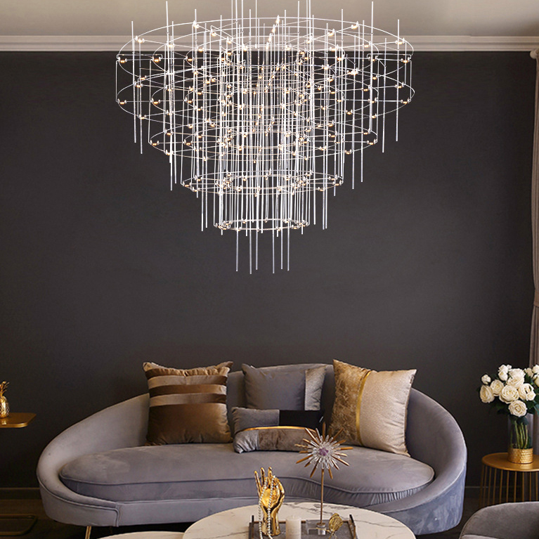 Люстра з точковими світлодіодними джерелами на сріблястому каркасі з декором зі скляних стрижнів CHILL A