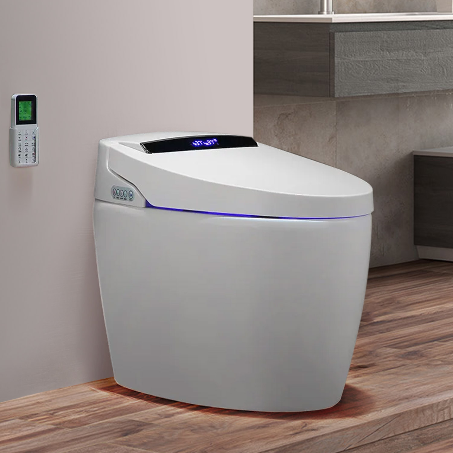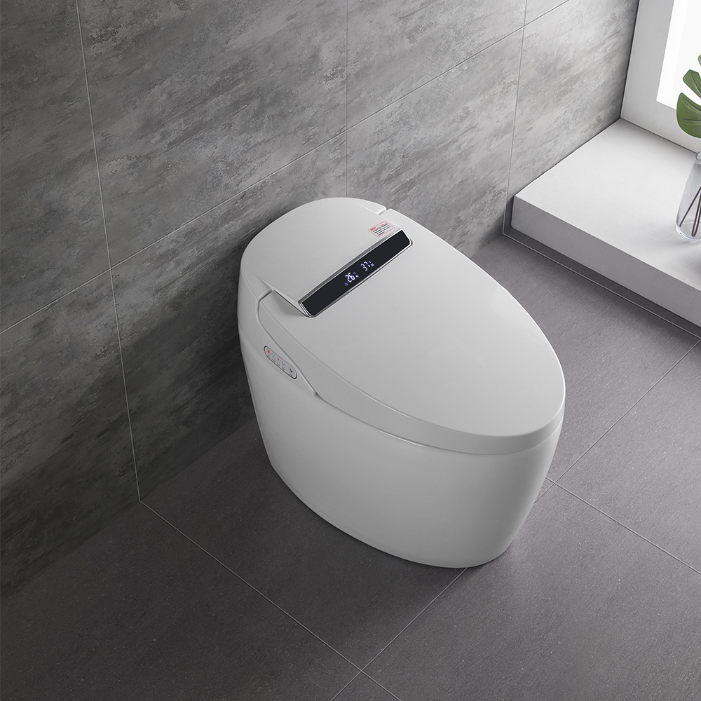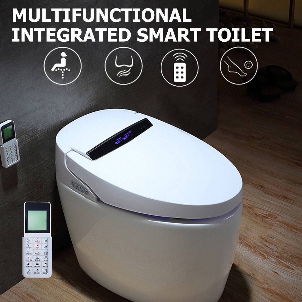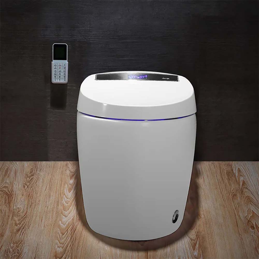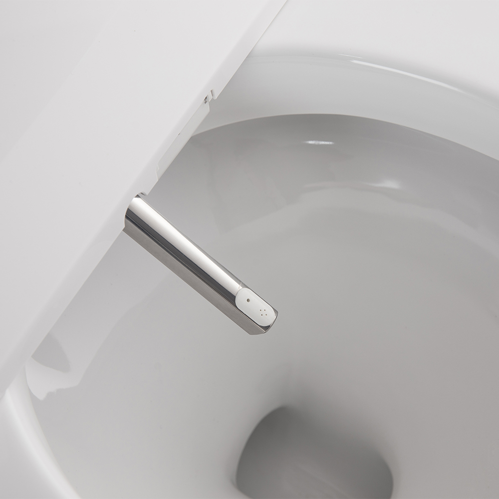 Цей розумний унітаз сучасного дизайну відрізняється елегантним дизайном без бачка та автоматичною системою змиву, що забезпечує простоту використання. Розумний унітаз без резервуара є неперевершеним поєднанням найкращих характеристик звичайного високоякісного керамічного унітазу з інноваціями сучасного вдосконаленого унітазу з такими декадентськими функціями, як підігрів сидінь, проточна тепла вода, сушіння повітрям та багато іншого. Крім того, екологічний та гігієнічний унітаз без бачка усуває майже всі потреби в унітазному папері або вологих серветках, оскільки форсунки, включені до цієї моделі, є найбільш ефективним варіантом на ринку в даний час.