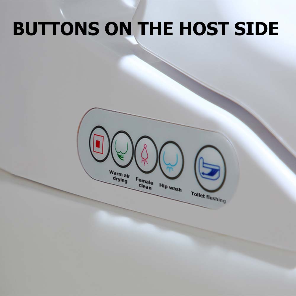 – Особливості покращеного стилю Включає жіночу насадку-розпилювач промивка, промивка насадки для стегна з підігрівом, сушіння теплим повітрям, автоматичне промивання стопи, автоматичне промивання після того, як ви встанете з сидіння, світлодіодне освітлення, промивання кнопки після збою живлення змінного струму.