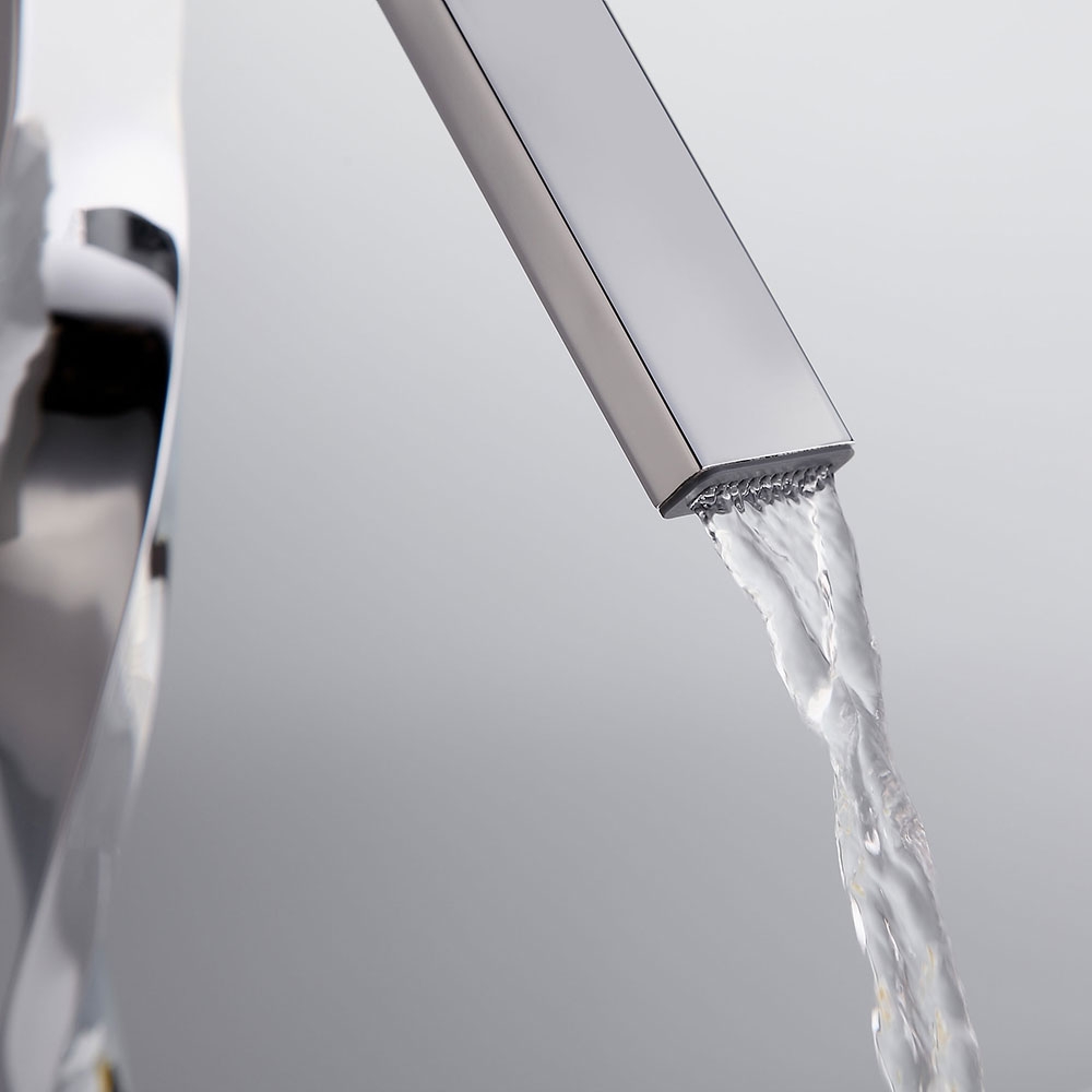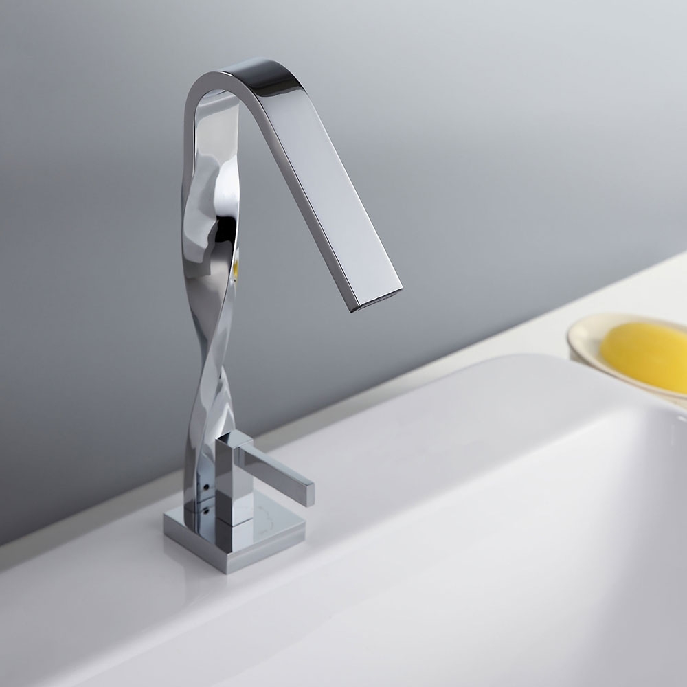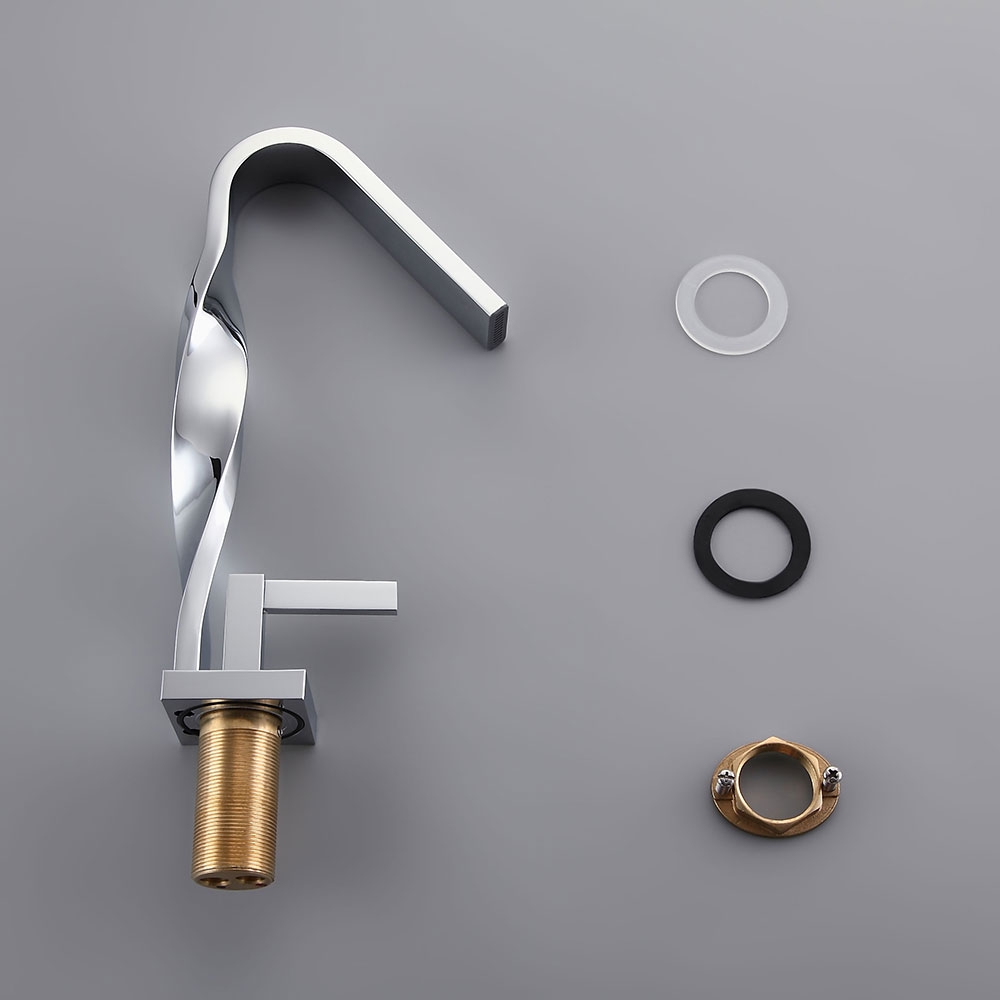 Інноваційний та стильний продукт із колекції Spiral привносить потужність та елегантність у сучасну ванну кімнату завдяки своєму унікальному спіралеподібному дизайну та дзеркальній хромованій обробці. Цей змішувач з тонким силуетом, витонченими лініями та плавним вигнутим шийкою стане шикарним доповненням до сучасної та мінімалістської ванної кімнати або навіть до більш традиційного та вишуканого дизайну. Крім того, тонка та квадратна ручка добре поєднується із встановленим на палубі краном, щоб завершити цей стильний вигляд. Виготовлений із міцної латуні, цей добре складений змішувач для раковини для ванної кімнати готовий до будь-якої ситуації.