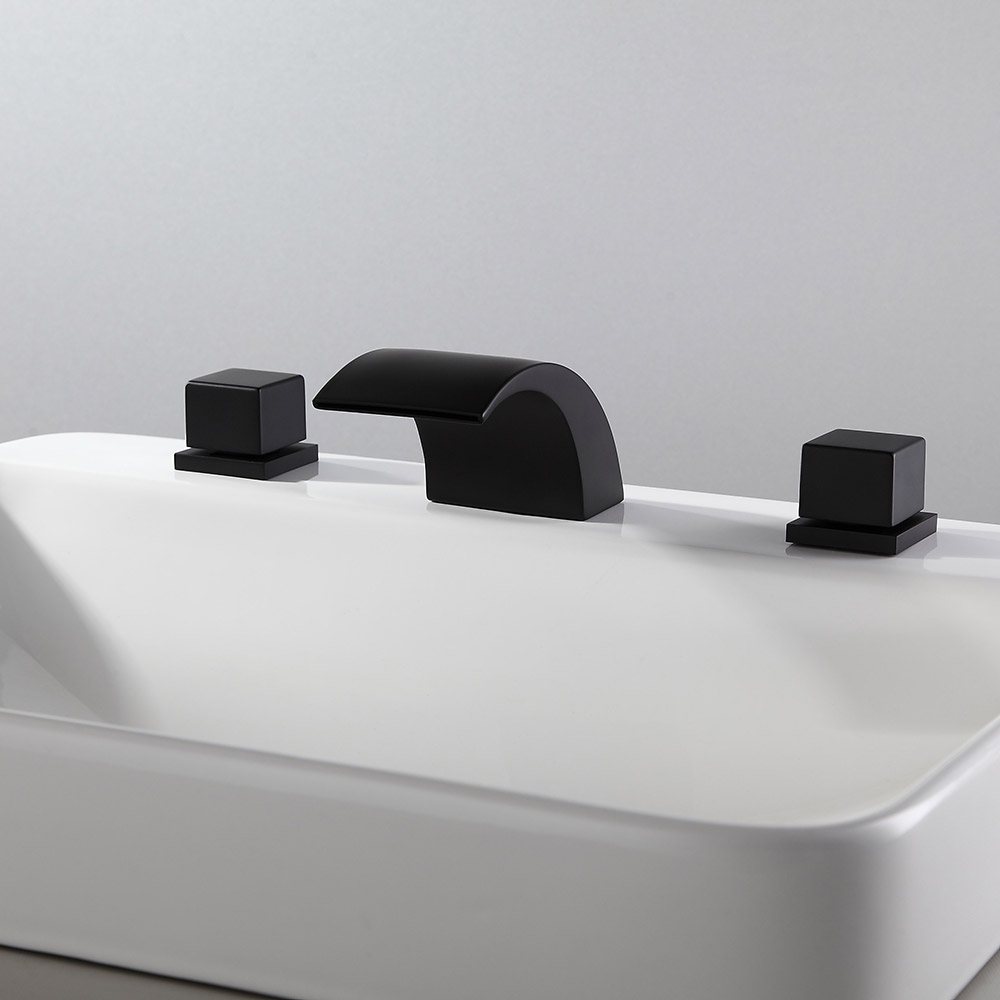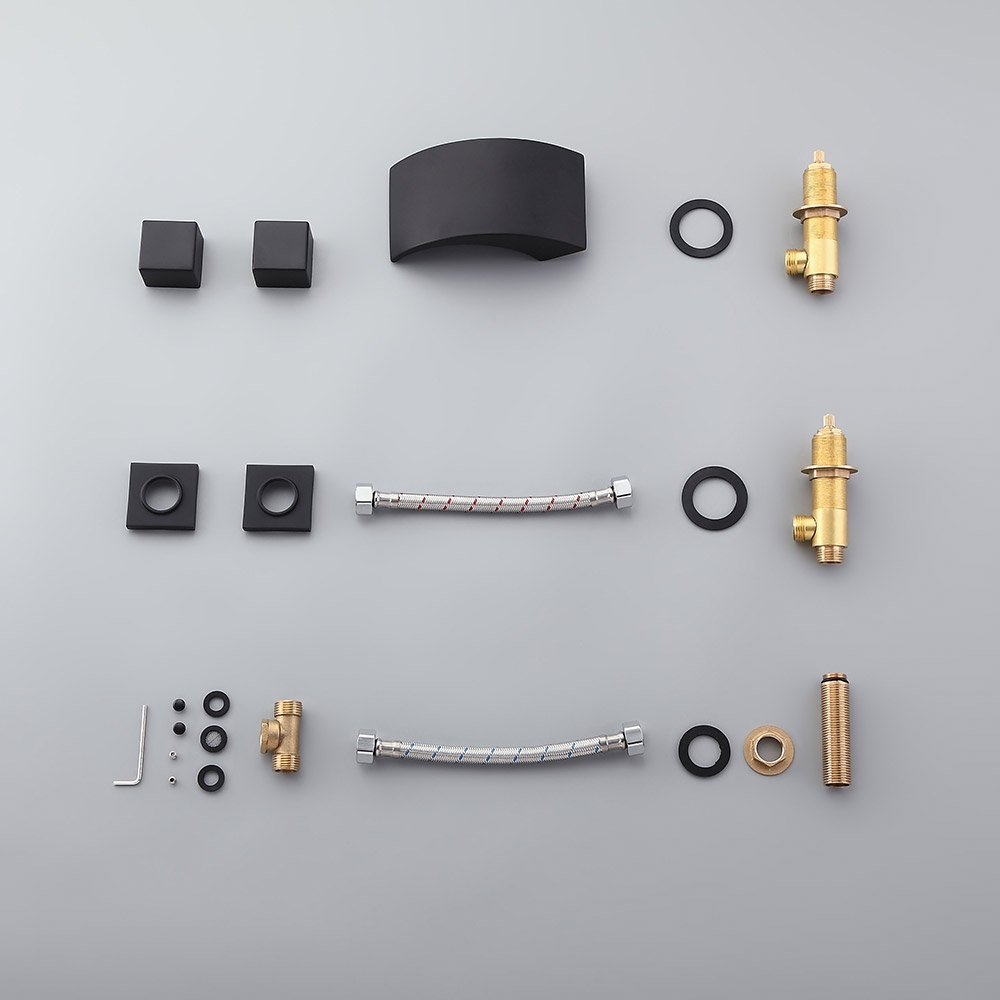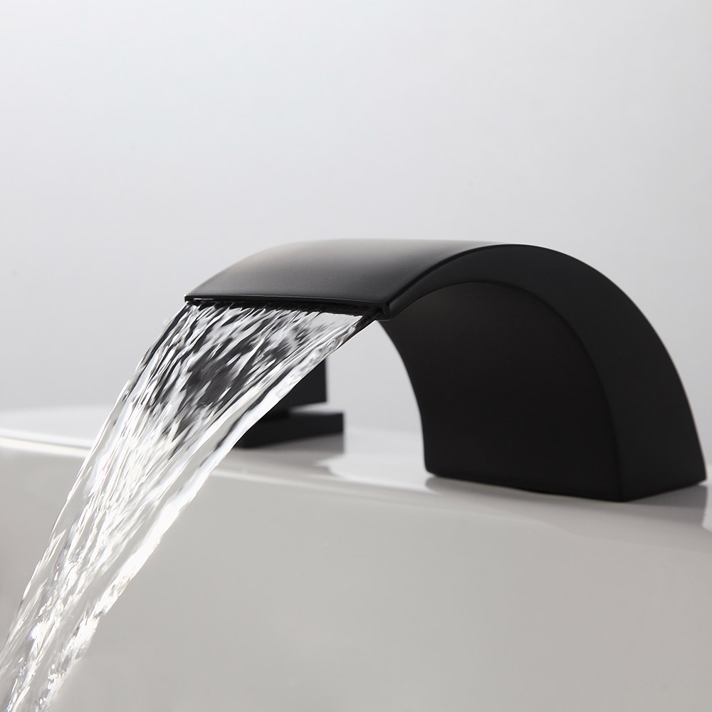 Змішувачі Victoria з вигнутим виливом, що створює водоспад і демонструє низькопрофільну поставу, створені для того, щоб принести сучасний і веселий вигляд у будь-яку кімнату. Цей змішувач з гладкими лініями та гладкими краями має чарівний мінімалістський зовнішній вигляд, який прикрасить будь-яку сучасну ванну кімнату. Вилив з низькою дугою забезпечує великий потік ламінарної води та створює гарний ефект каскаду. Подвійні квадратні ручки дозволяють легко контролювати температуру та потік води. Виготовлений з цільної латуні з матово-чорним покриттям, стійкий до корозії та потьмарення, що забезпечує тривалий термін служби.