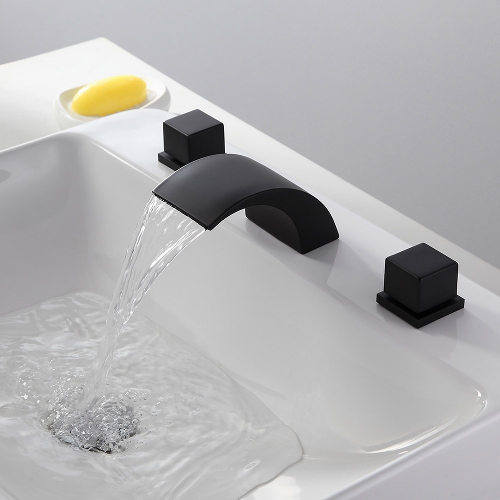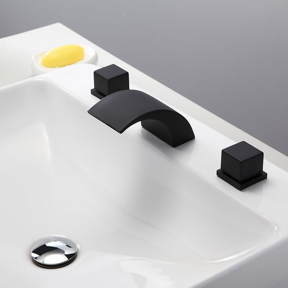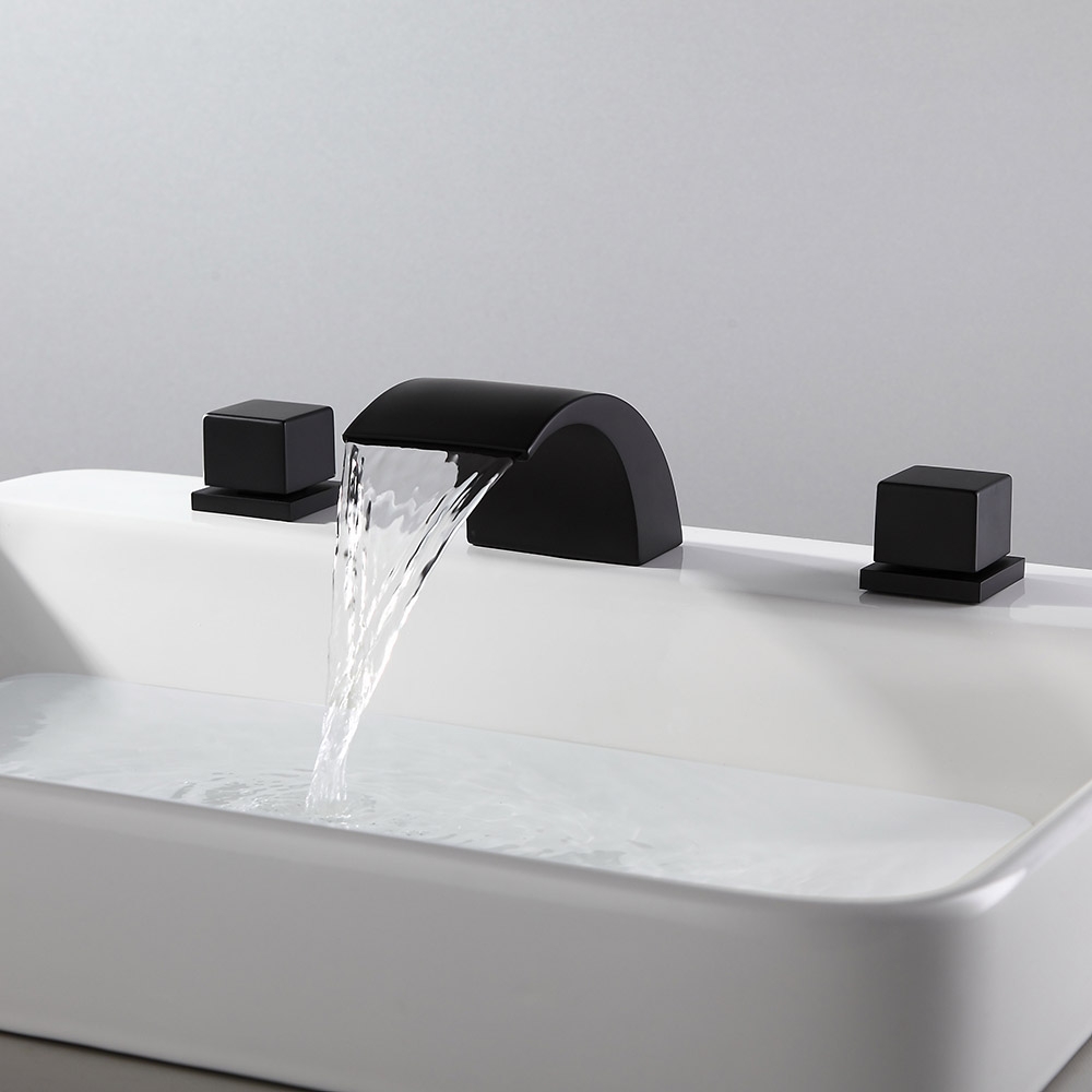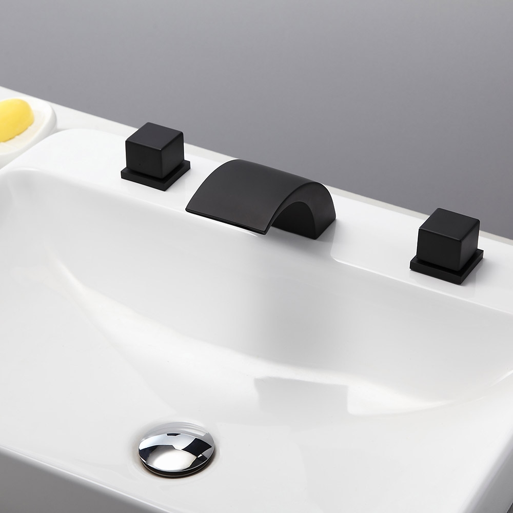 Змішувачі Victoria з вигнутим виливом, що створює водоспад і демонструє низькопрофільну поставу, створені для того, щоб принести сучасний і веселий вигляд у будь-яку кімнату. Цей змішувач з гладкими лініями та гладкими краями має чарівний мінімалістський зовнішній вигляд, який прикрасить будь-яку сучасну ванну кімнату. Вилив з низькою дугою забезпечує великий потік ламінарної води та створює гарний ефект каскаду. Подвійні квадратні ручки дозволяють легко контролювати температуру та потік води. Виготовлений з цільної латуні з матово-чорним покриттям, стійкий до корозії та потьмарення, що забезпечує тривалий термін служби.