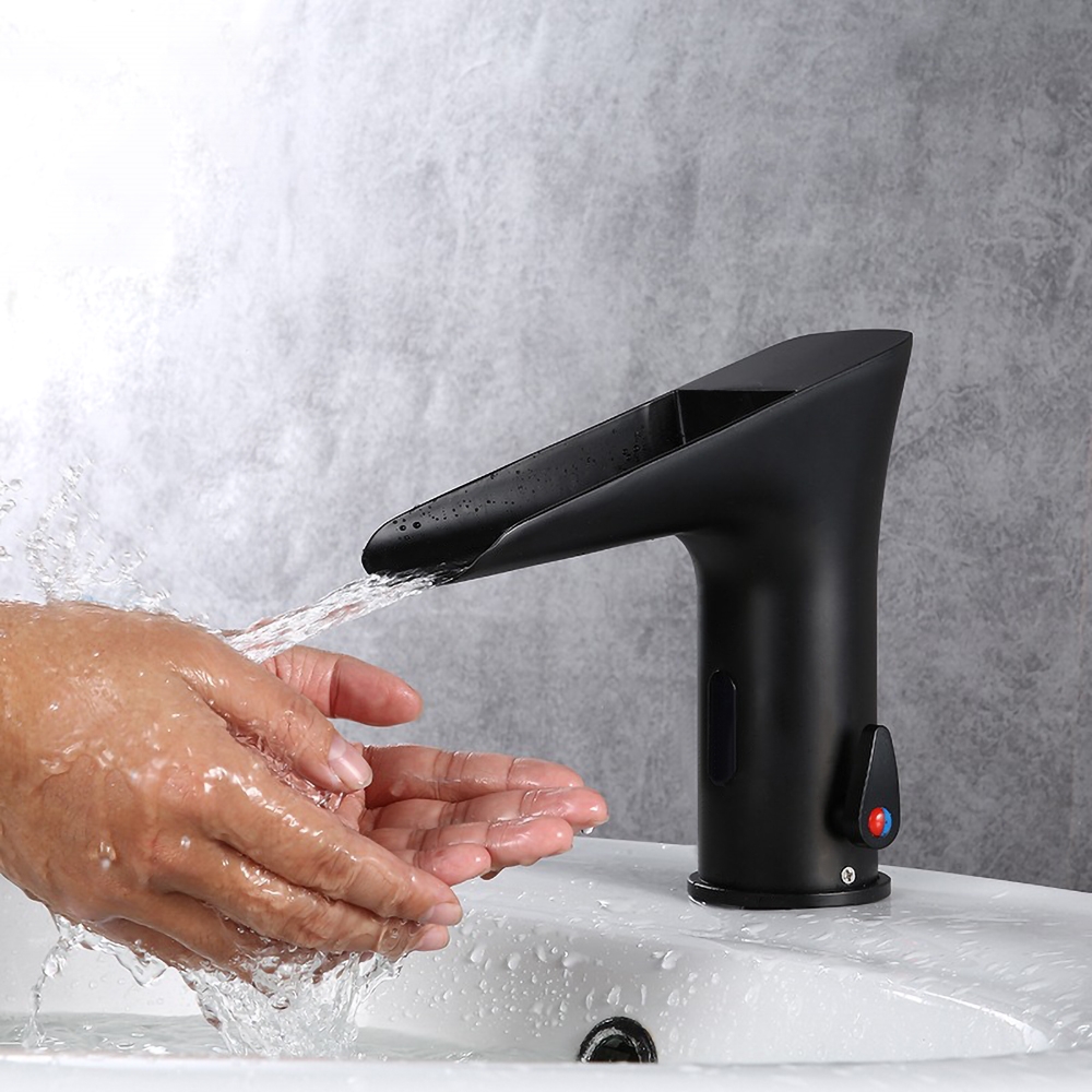 Обновіть зовнішній вигляд своєї ванної кімнати за допомогою цього змішувача для раковини. Цей змішувач з водоспадним дизайном приверне багато уваги та зробить миття рук легким завданням. А функція автоматичного датчика приносить інноваційний елемент у ванну кімнату і робить її зручною у використанні. Додайте сучасності у свою ванну за допомогою цього змішувача з датчиком. Працює від 4 батарейок розміру AA (не входять до комплекту). з високоякісного якісний, стійкий до корозії матово-чорний колір.