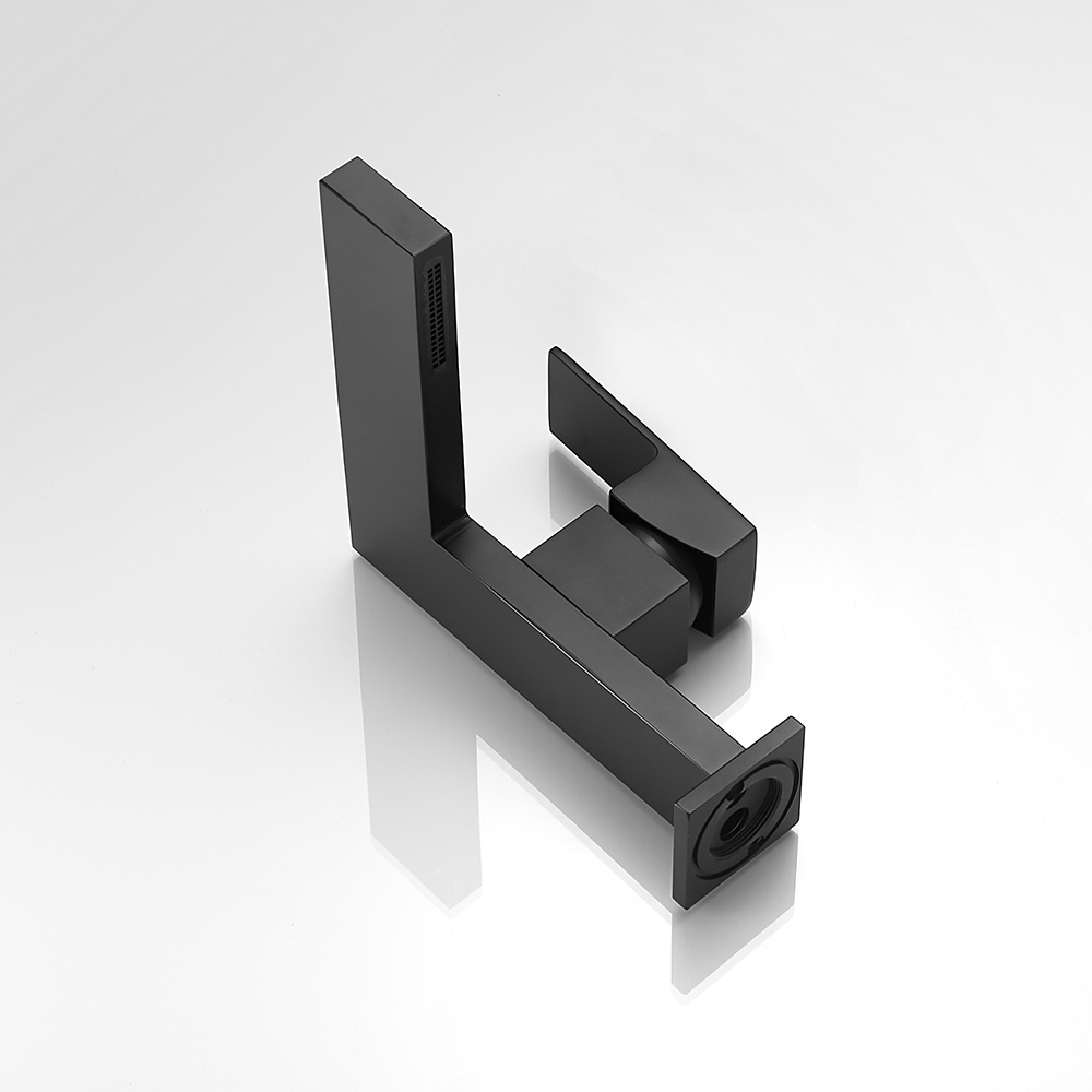 Цей змішувач для ванної кімнати з чіткими геометричними кутами та гранями стане стильним та чарівним акцентом у вашій ванній кімнаті, пропонуючи мінімалістську естетичну привабливість. Змішувач з водоспадним виливом спрямовує потік ламінарної води вниз, утворюючи мініатюрний водоспад і роблячи прання легким. В іншому випадку, з однією ручкою він забезпечує легкий і точний контроль температури і об'єму води. Виготовлений з міцної латуні, він забезпечує довгий термін служби та чудову продуктивність. матово-чорного кольору, стійкого до корозії.