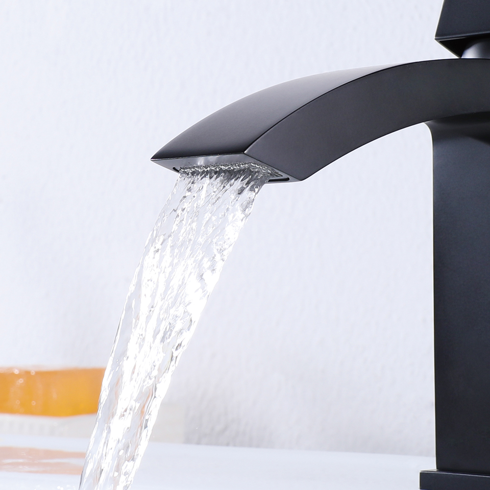 Прямі лінії та мінімалістичний дизайн поєднуються в цьому сучасному змішувачі для раковини з одним отвором. Ідеально поєднується з плавними вигнутими лініями та квадратним корпусом, це доповнення може підкреслити вражаючий силует та стиль, чарівний та простий. Крім того, підходяща одинарна ручка допоможе вам легко контролювати потік і температуру води. Він поставляється з дивовижною чорною обробкою, щоб протистояти корозії та зберігати стриманий, але чудовий вигляд. Змішувач для раковини зробить вашу ванну кімнату сучасною, стійкий до корозії чорний колір. >