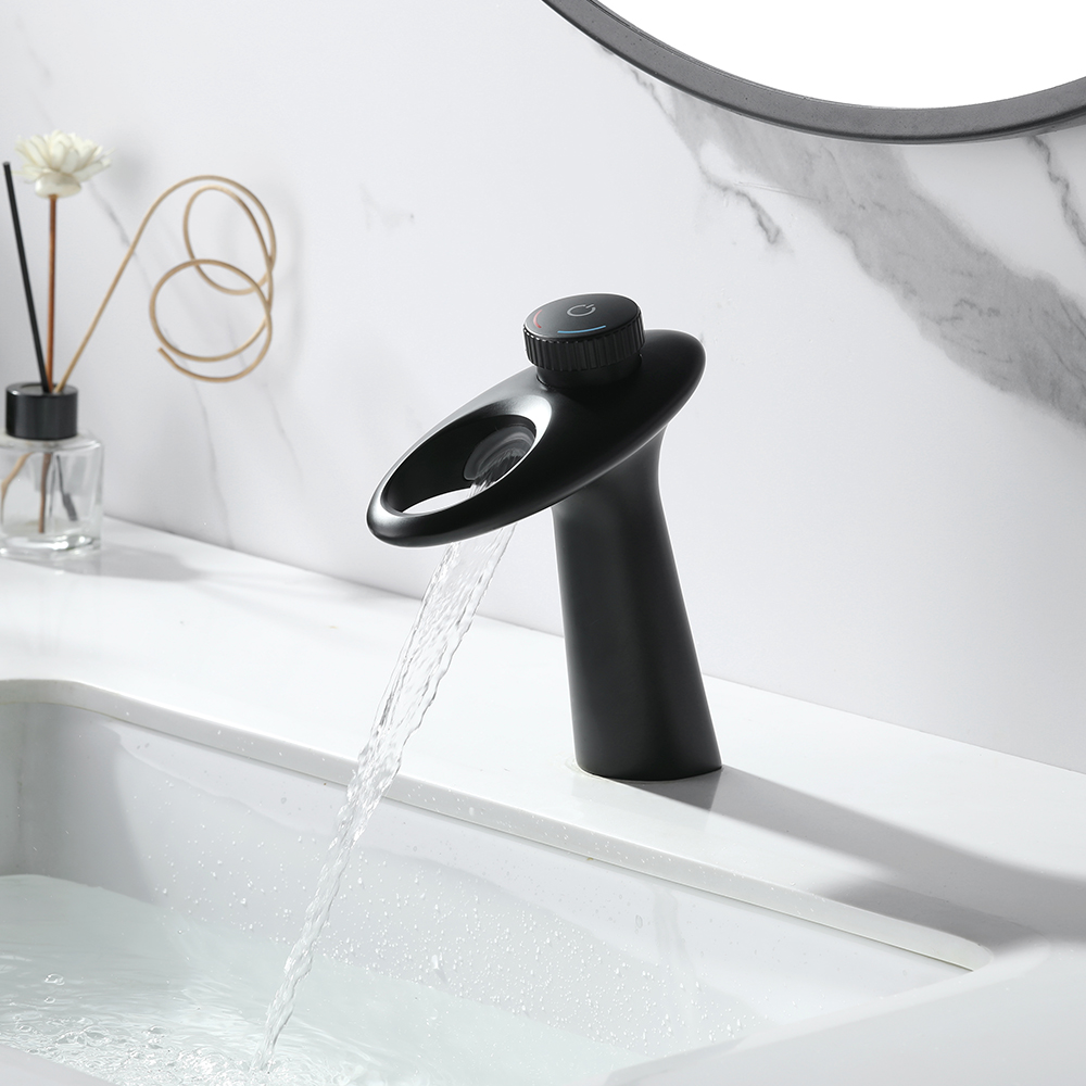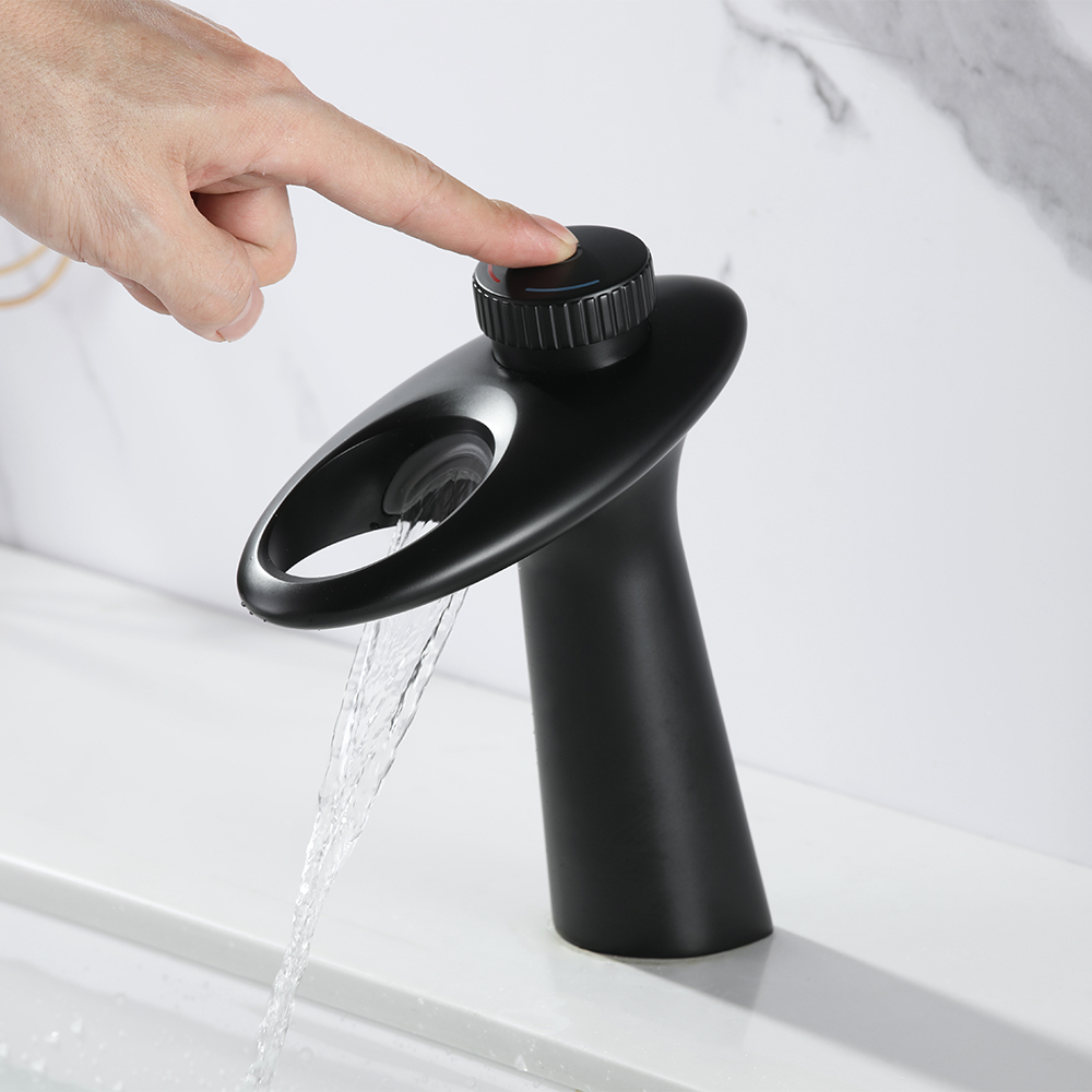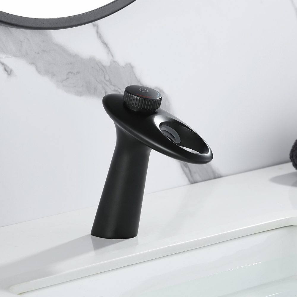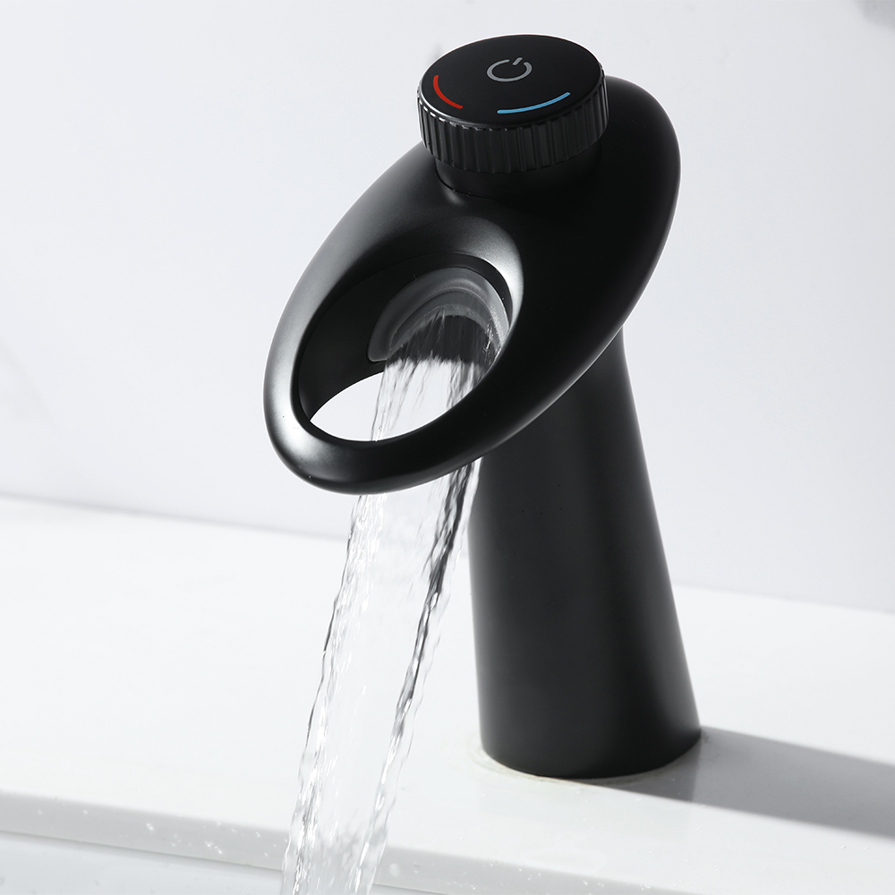 Сучасна розкіш укладена у витончених лініях та плавних вигинах цього змішувача для раковини. Розширена функціональність досягається за рахунок аерованого виливу-водоспаду, з якого вода не розбризкується. Одна ручка дозволяє легко регулювати температуру та об'єм води. Міцна латунна конструкція стійка до іржі та корозії, забезпечуючи міцність та надійність на довгі роки. Видатна продуктивність, спрощена установка і простота обслуговування роблять цей змішувач прекрасною прикрасою вашого будинку. p>– Високоякісне корозійностійке оздоблення чорного кольору.