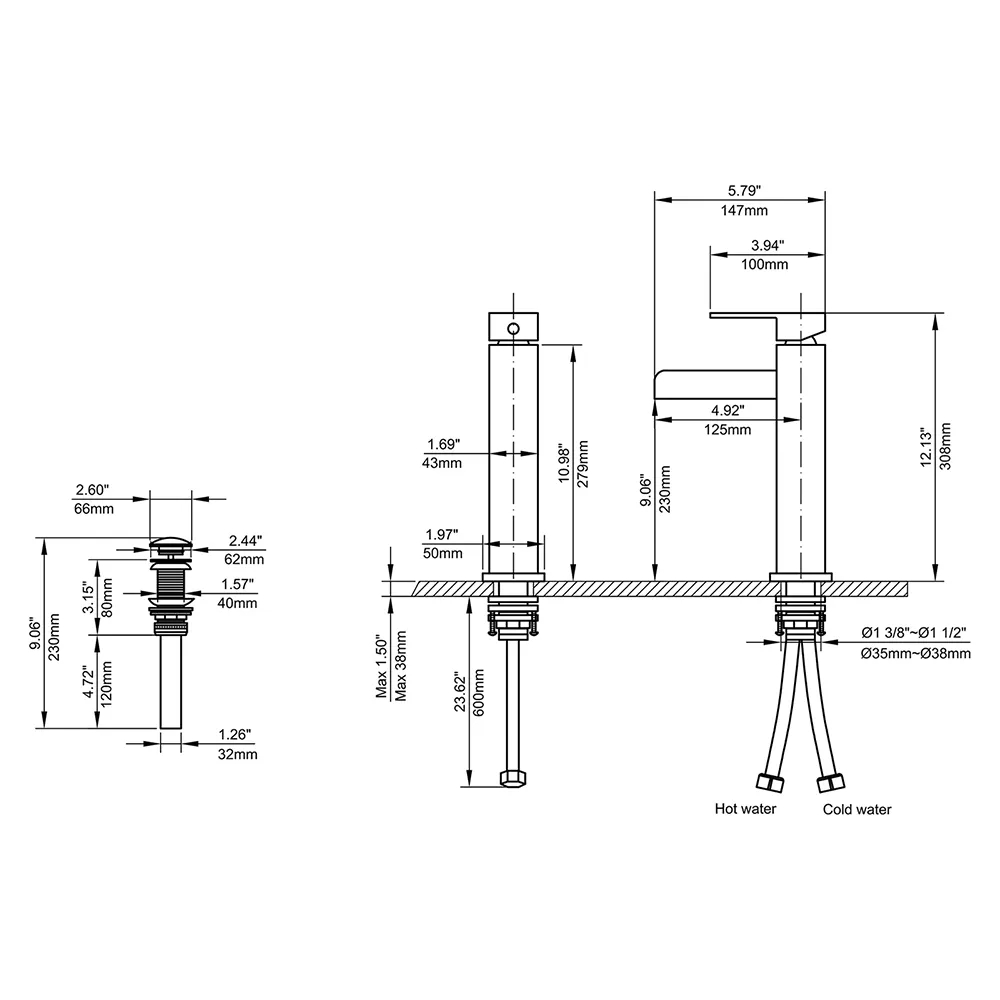 – У комплект входять усі кріпильні деталі, лінії гарячої/холодної води та висувний злив.