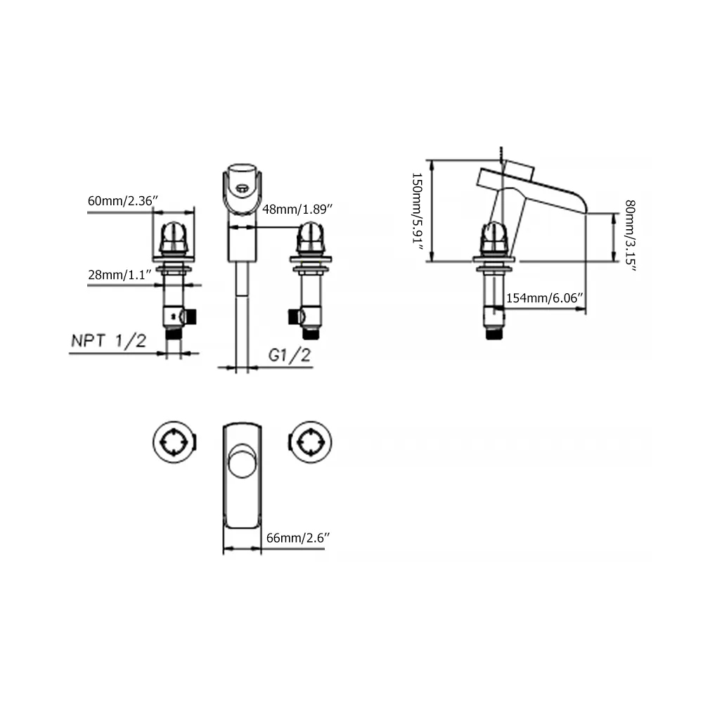 - Управляється двома ручками, потрібно 3 монтажні отвори.